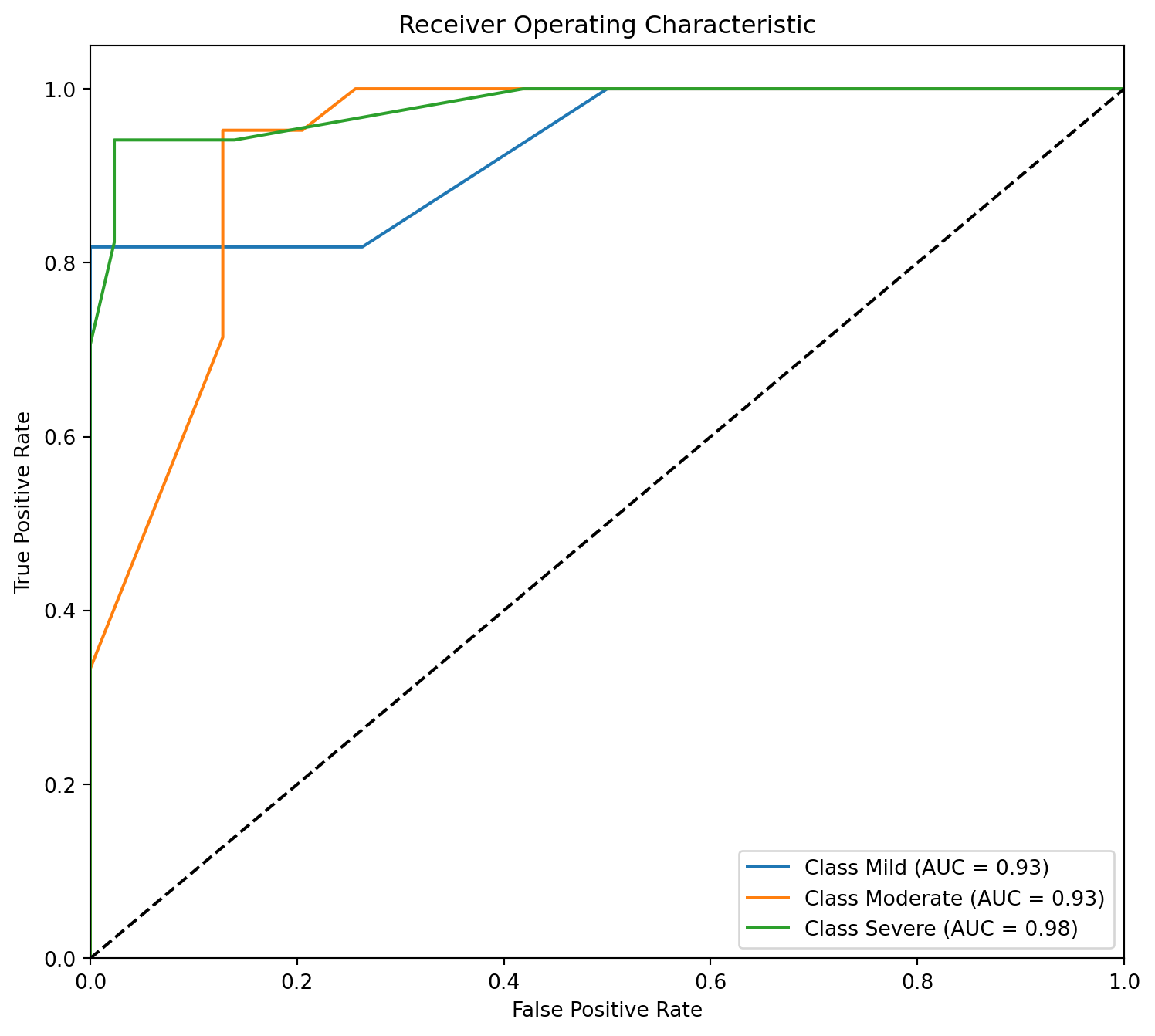 Overall, these metrics indicate that the model has performed well in predicting the severity ratings of the patients, with high accuracy, good distinction between severity levels, and substantial agreement with the actual severity ratings provided by physicians.
